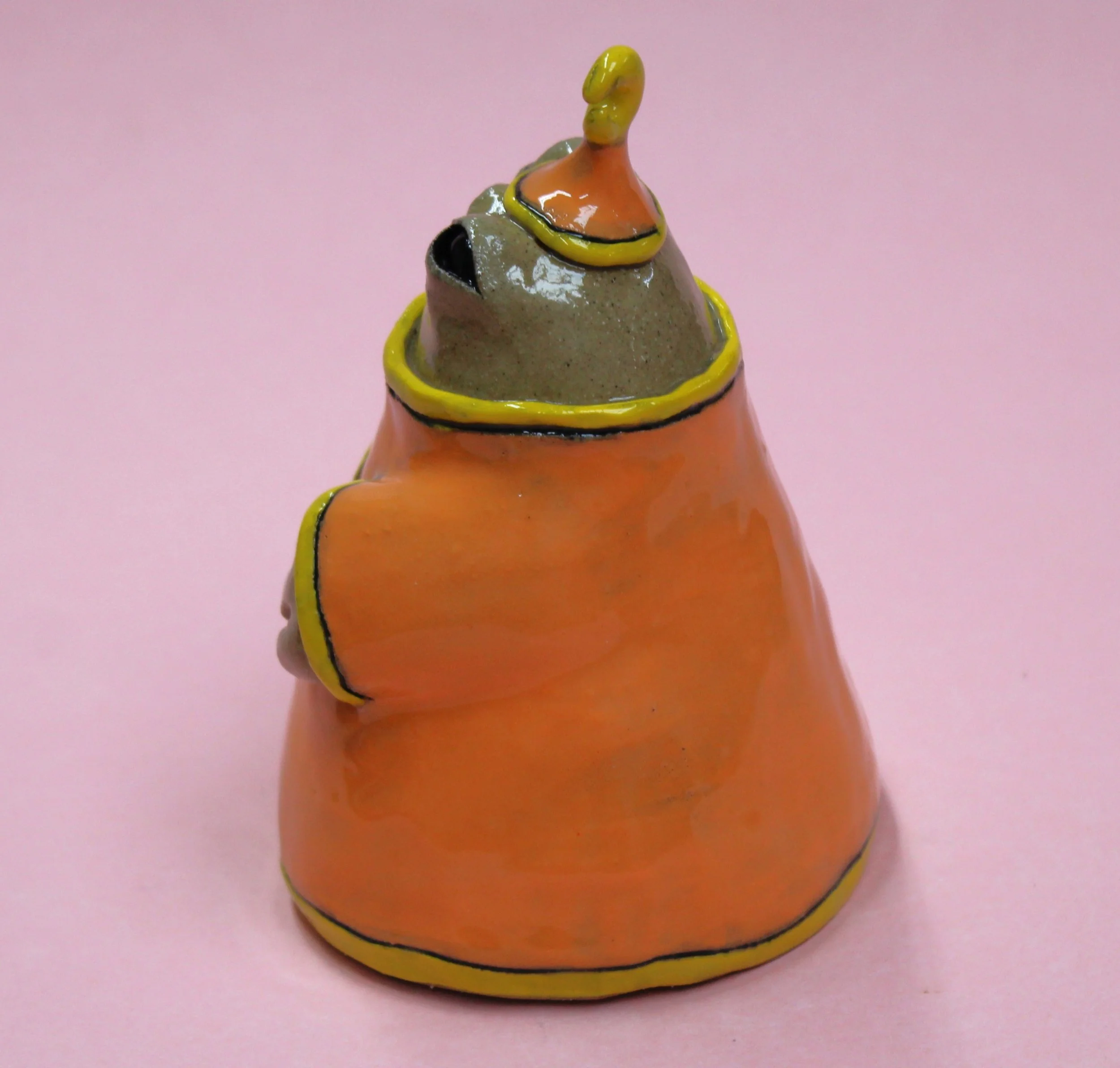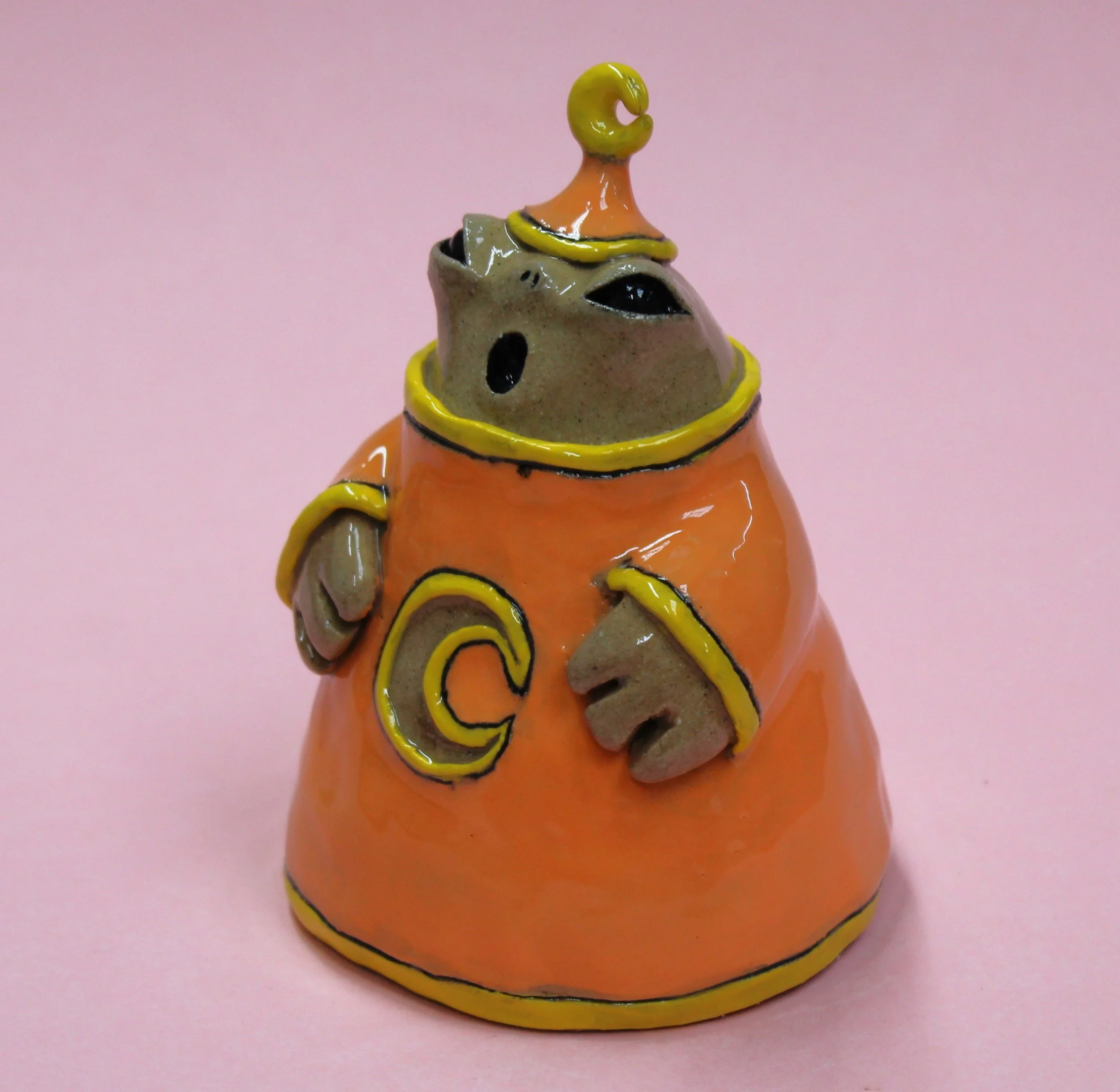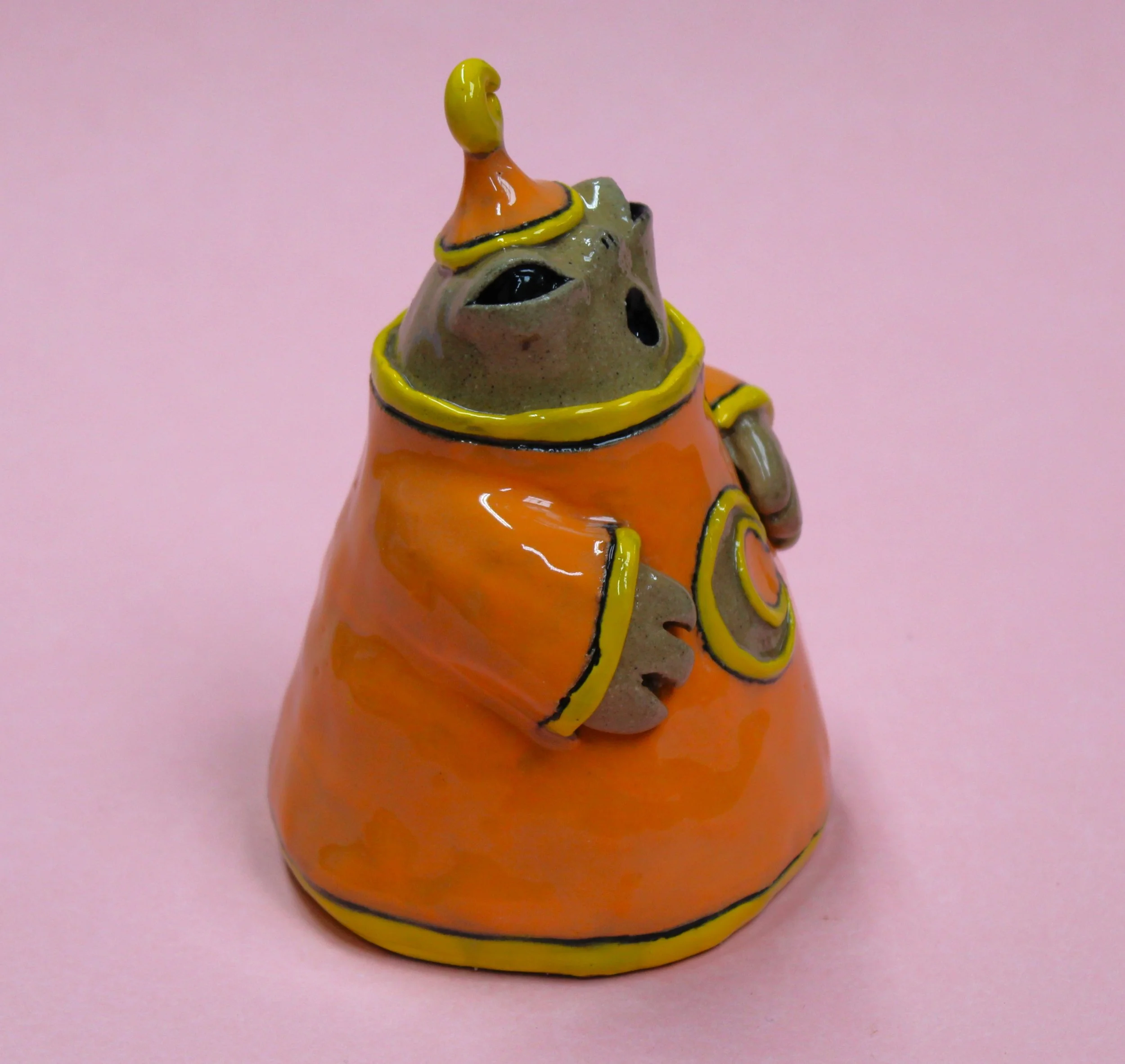 Handbuilt by me in a ceramics studio in Glasgow. This creature was made using buff stoneware clay and decorated with underglaze.