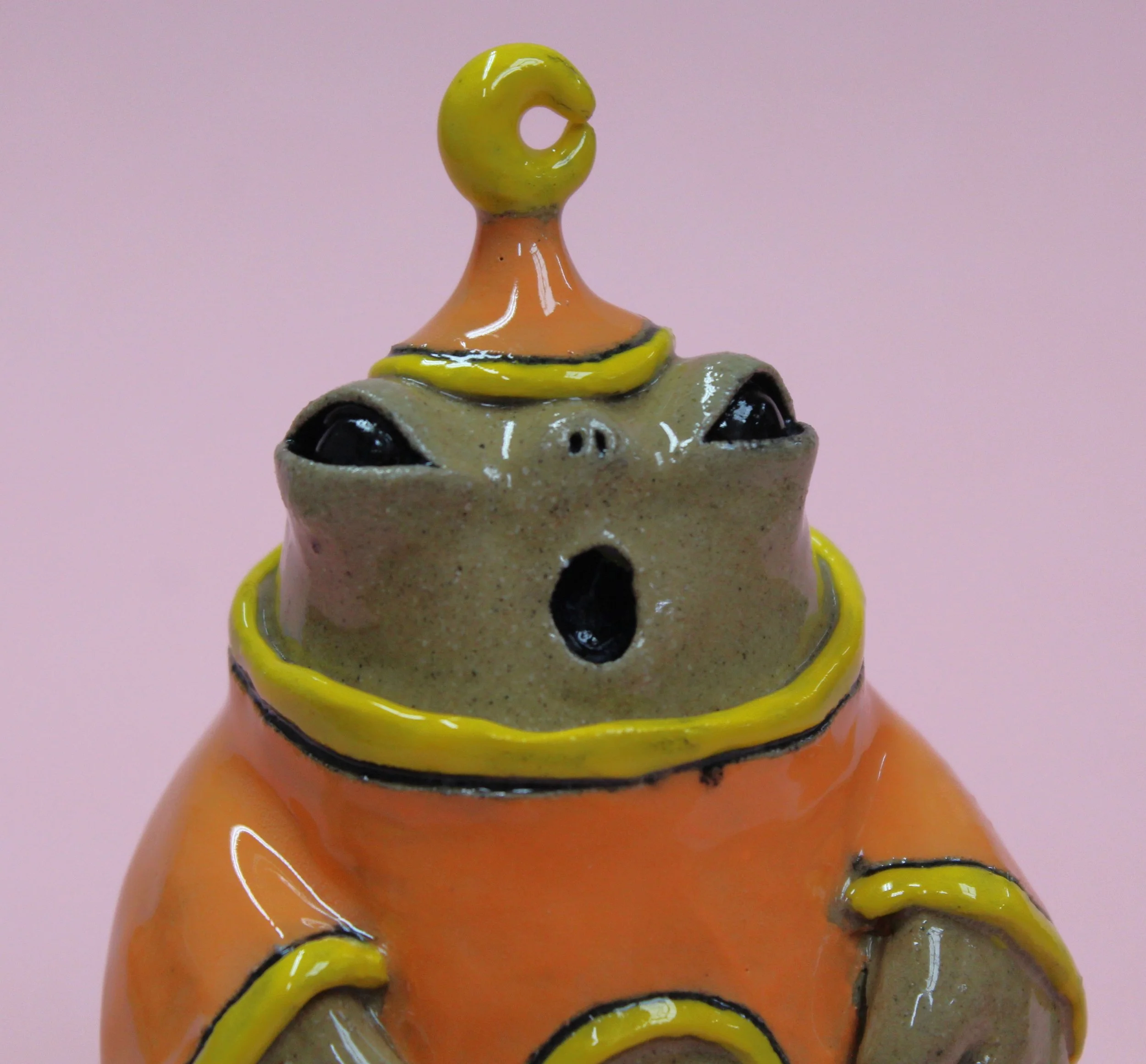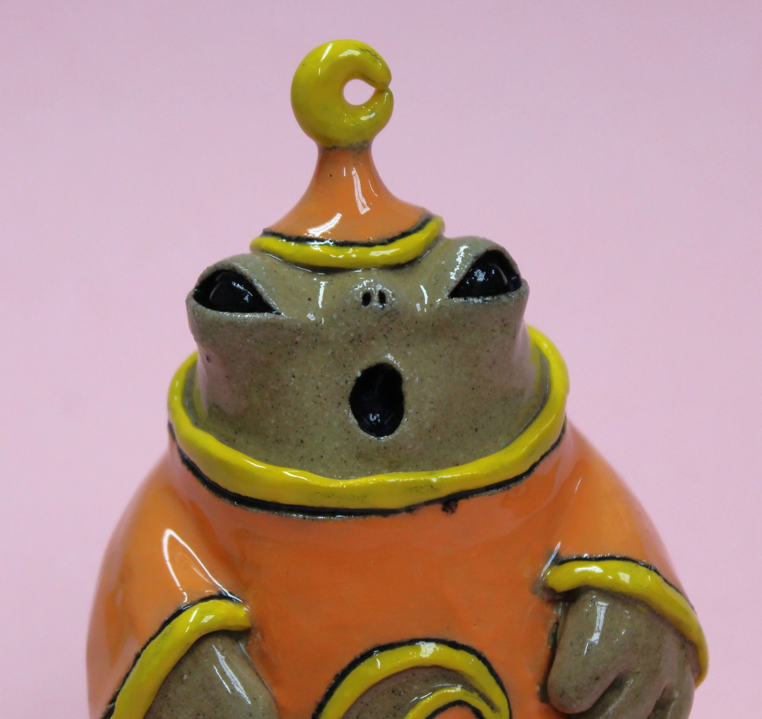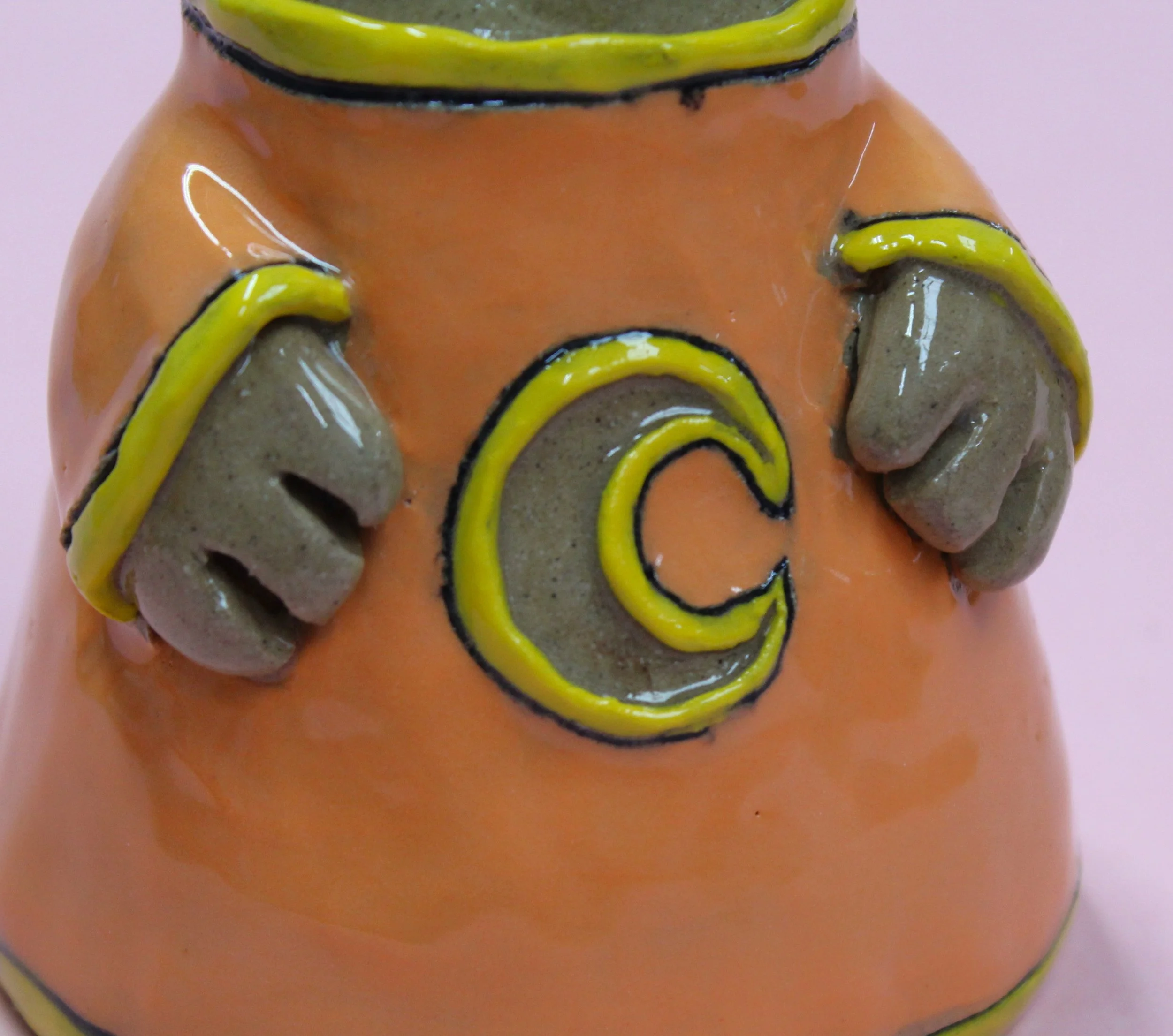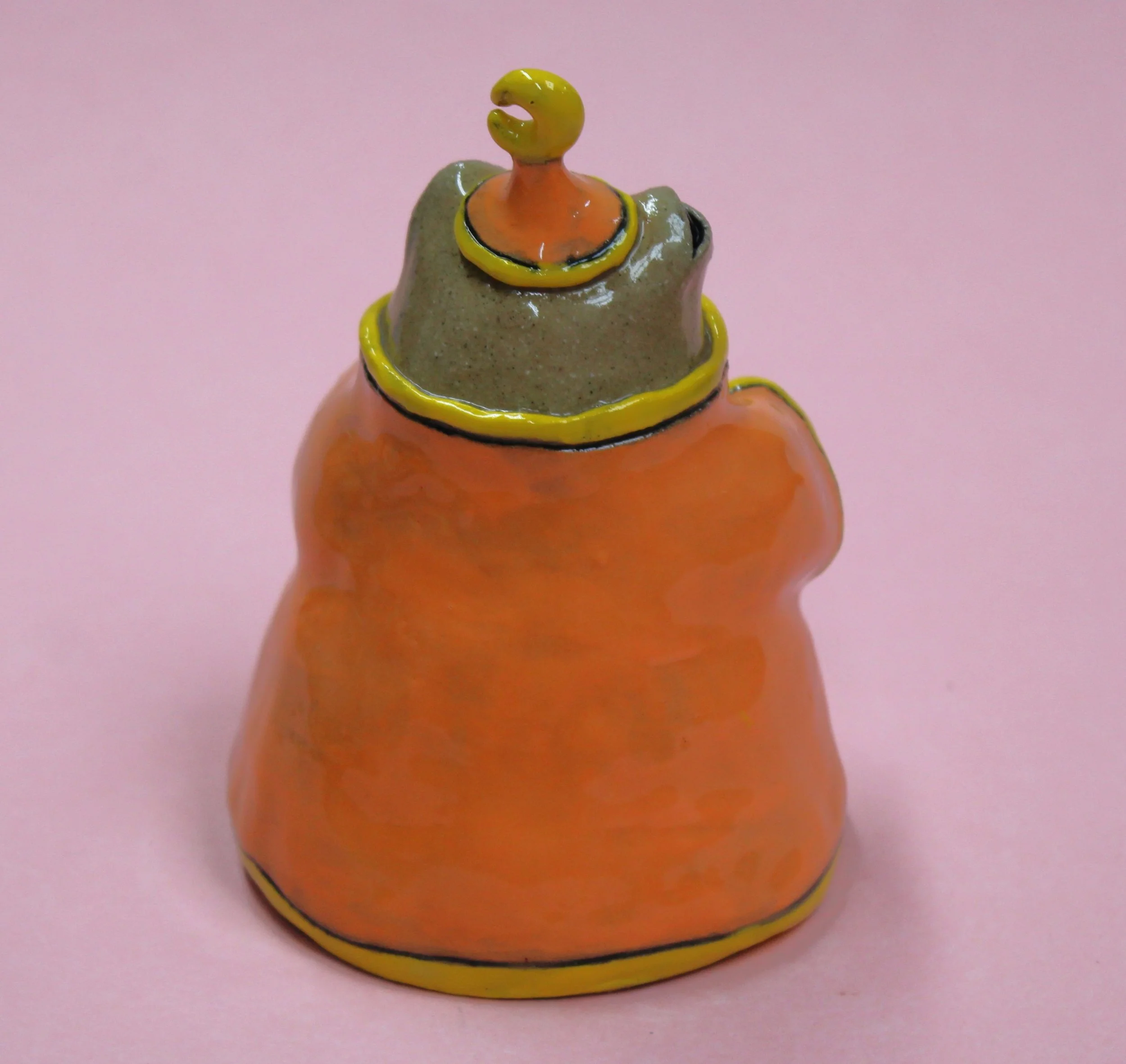 Handbuilt by me in a ceramics studio in Glasgow. This creature was made using buff stoneware clay and decorated with underglaze.