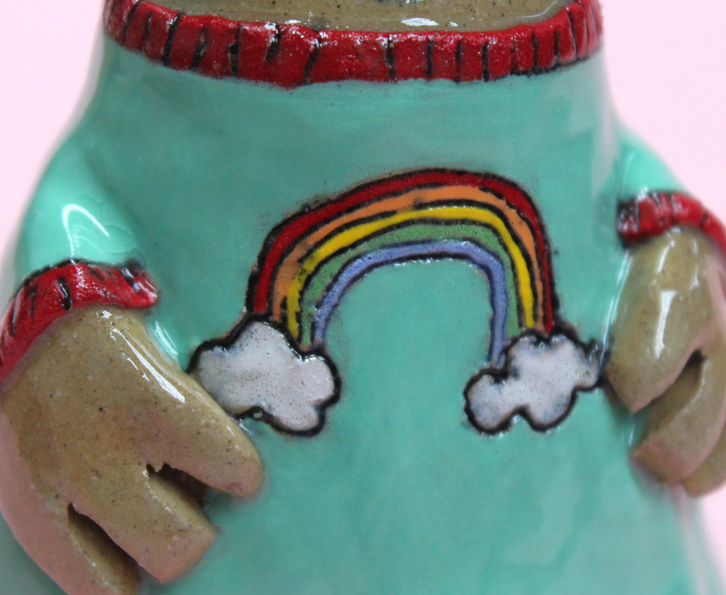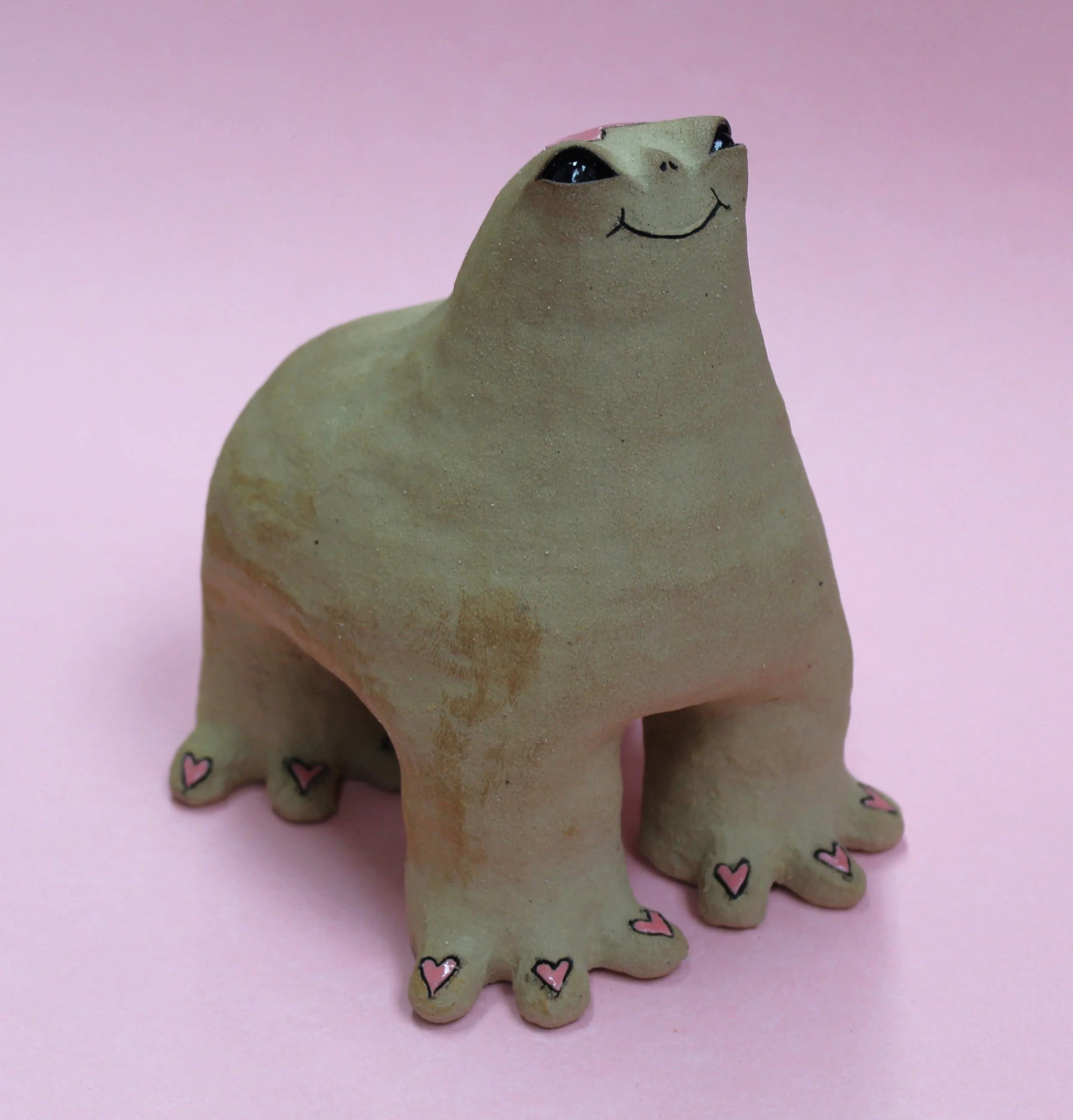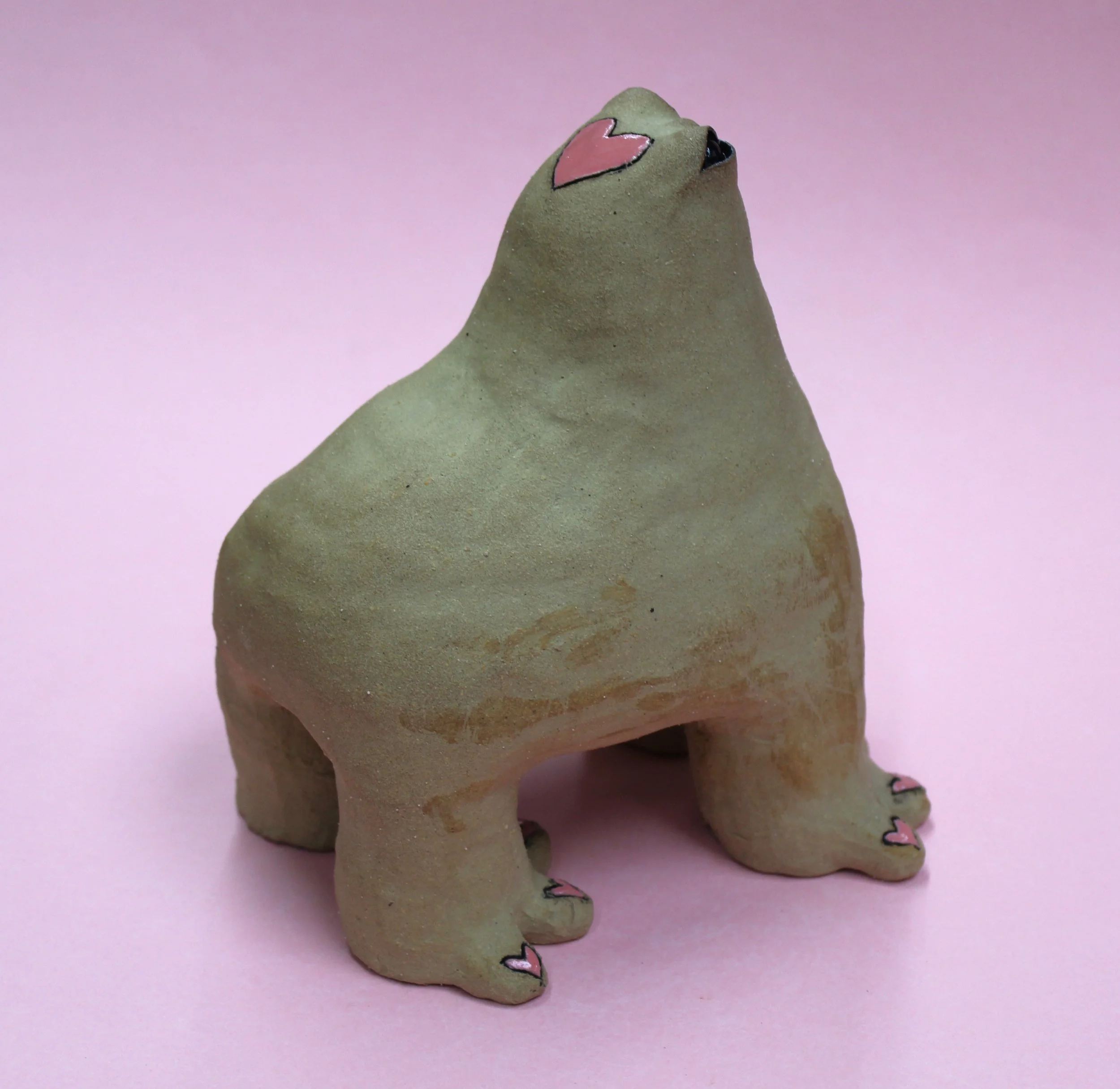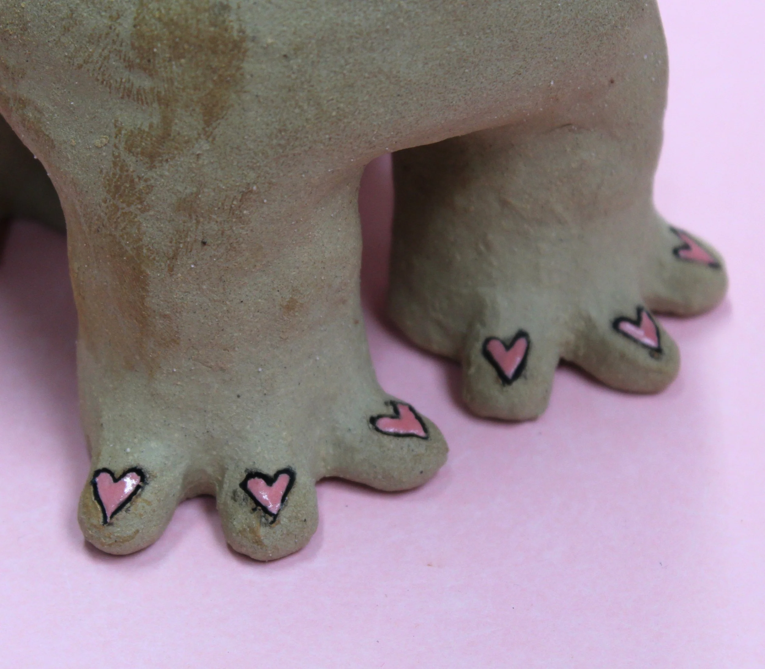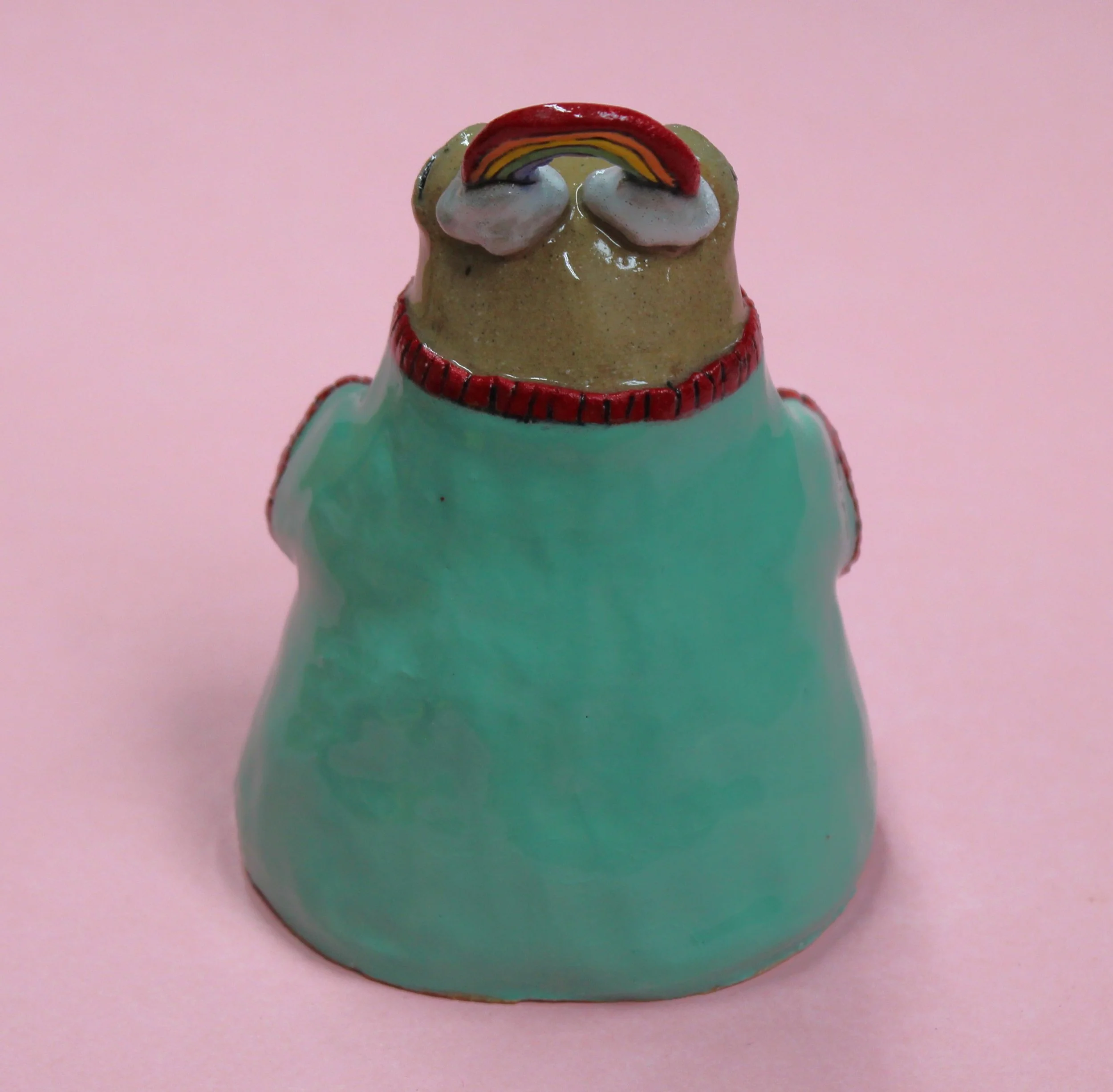 Handbuilt by me in a ceramics studio in Glasgow. This creature was made using buff stoneware clay and decorated with underglaze.