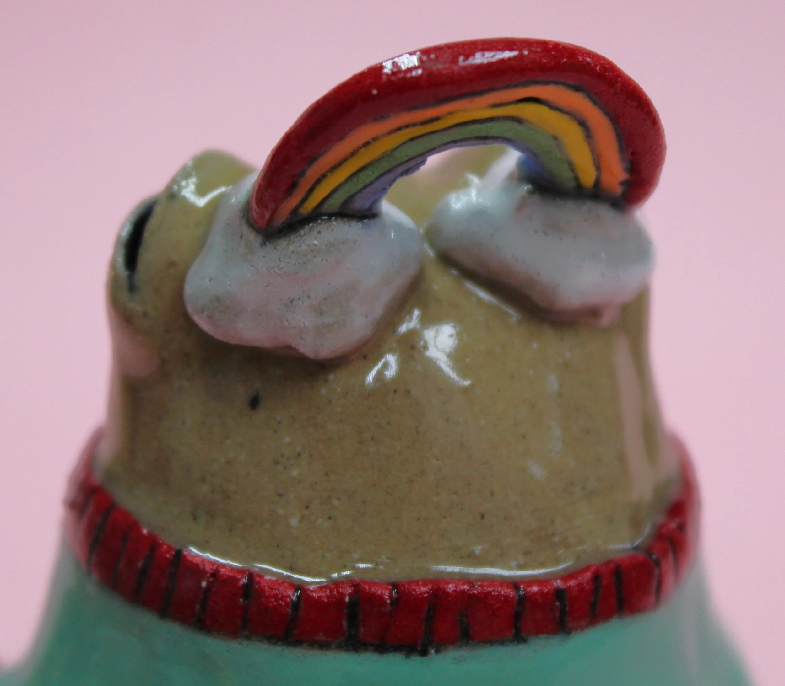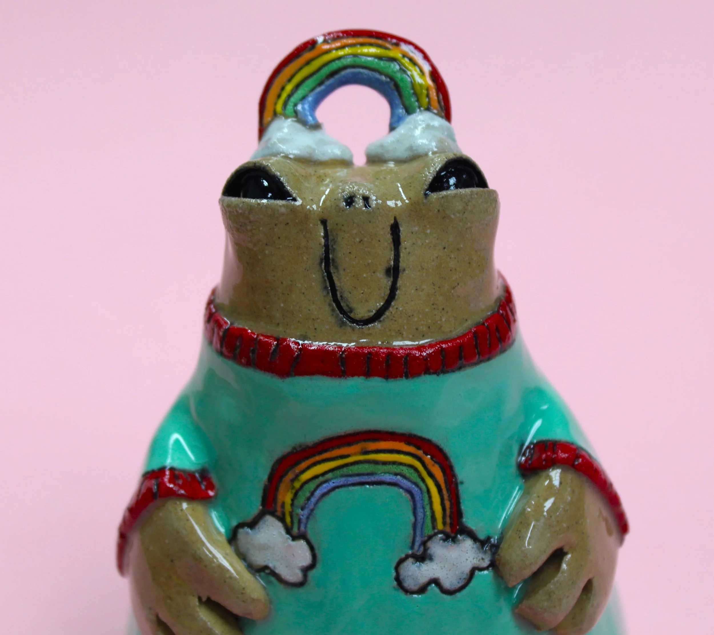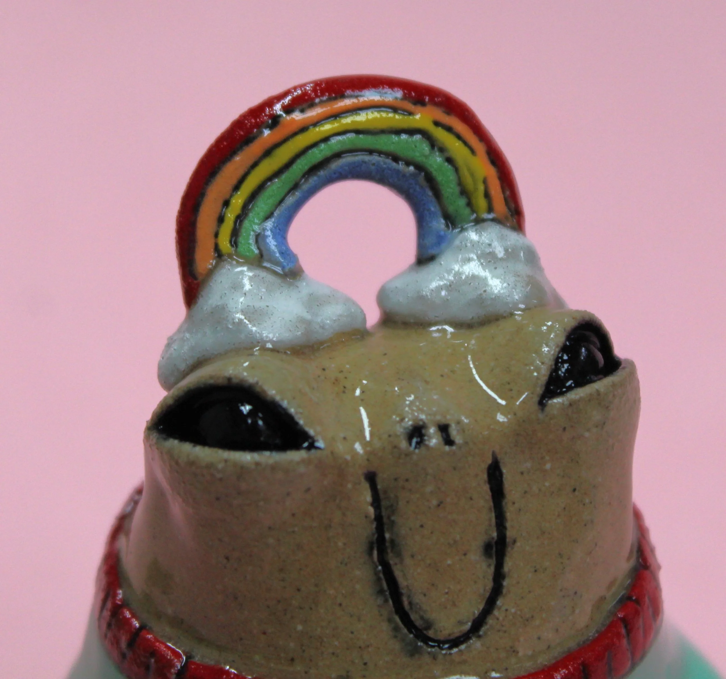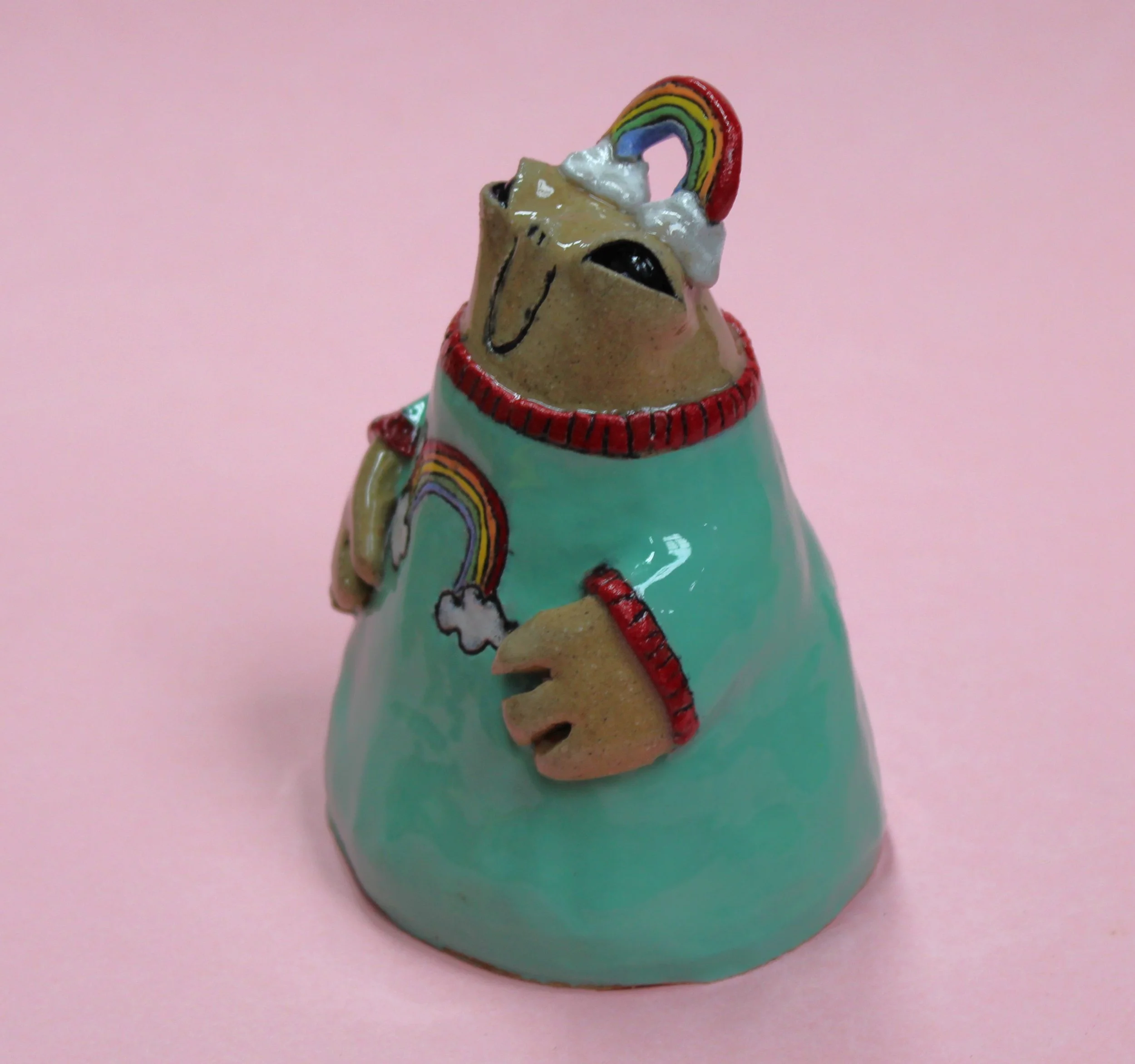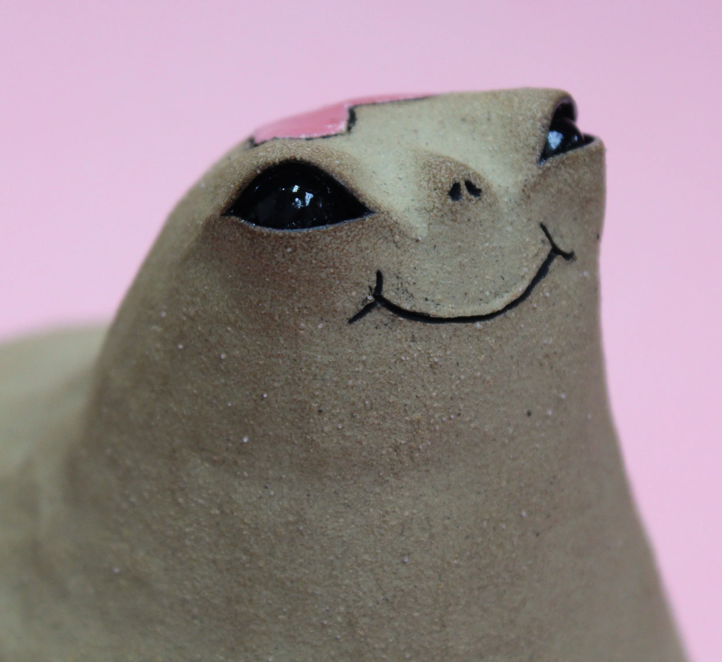 Handbuilt by me in a ceramics studio in Glasgow. This creature was made using buff stoneware clay and decorated with underglaze.