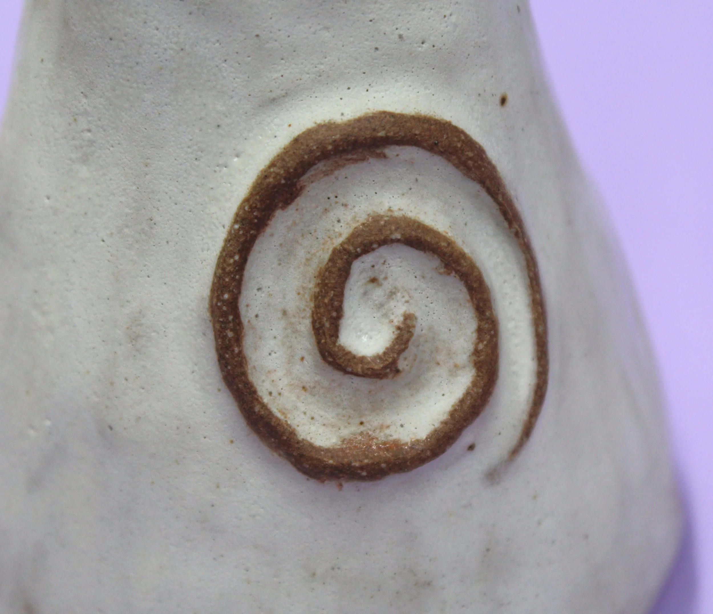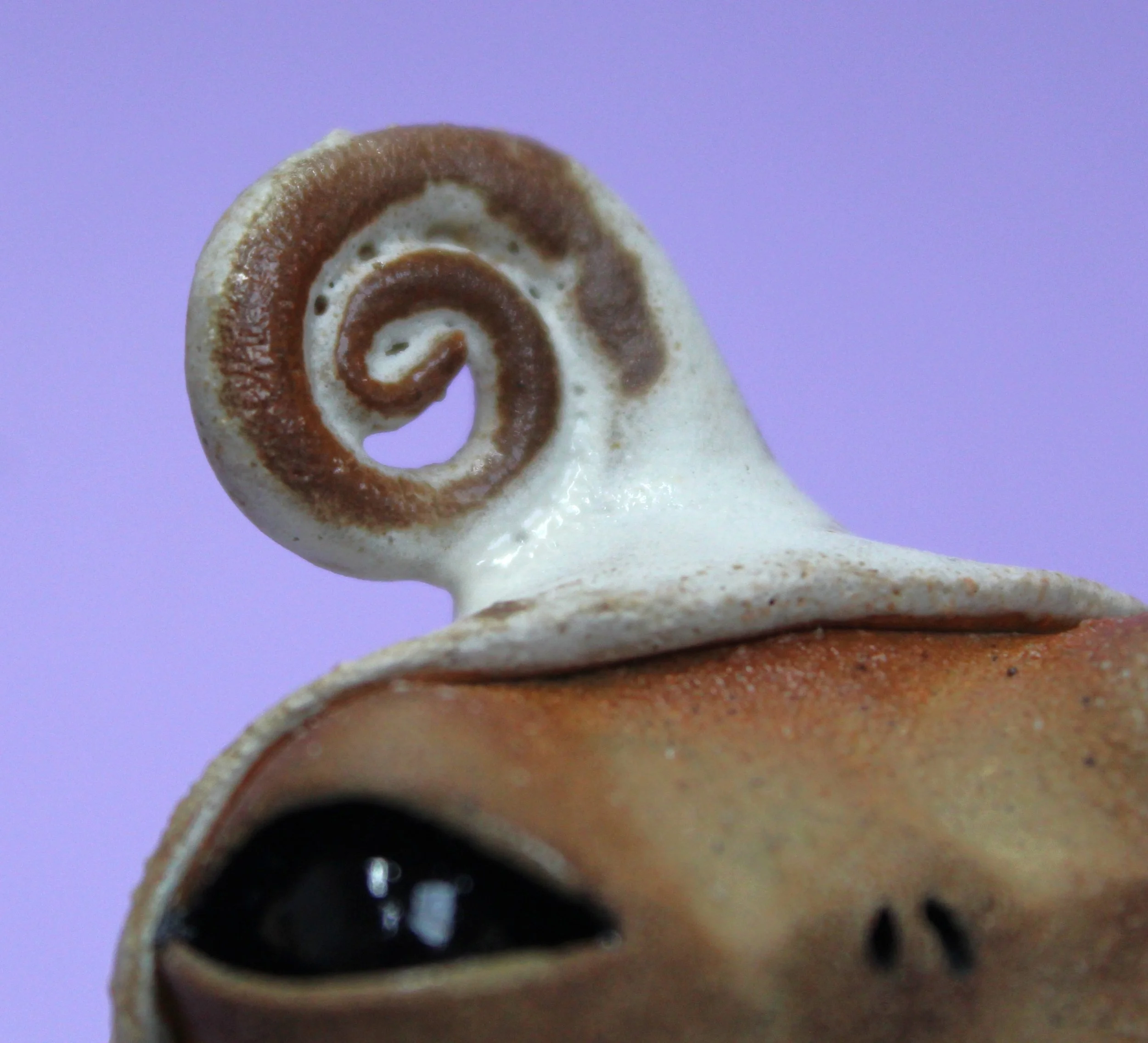 Handbuilt by me in a ceramics studio in Glasgow. This creature was made using buff stoneware clay and has been raku fired to create the beautiful black cracks in the glaze.